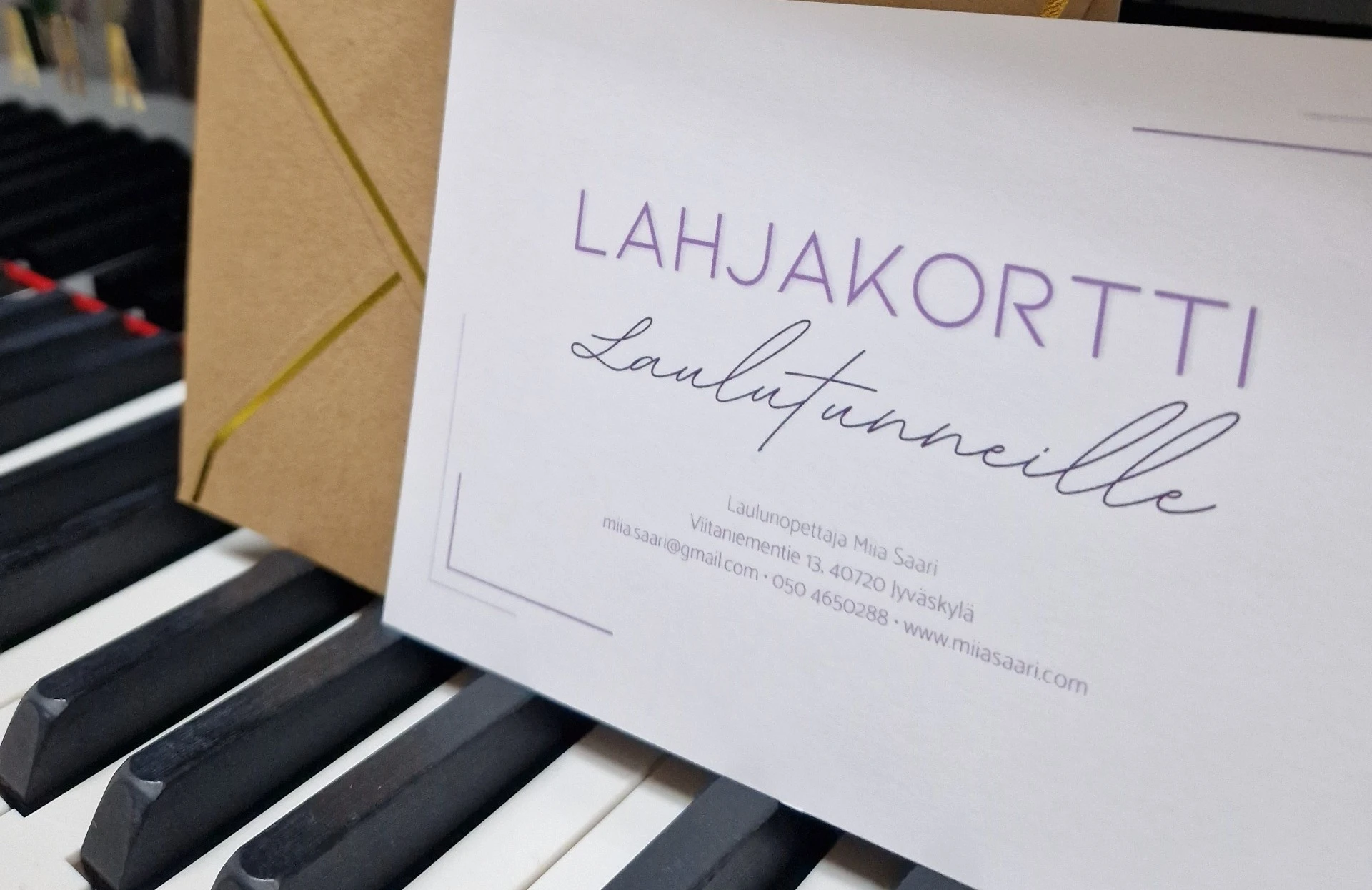 Voit valita lahjakortille yksinlaulun tutustumistunnin (60 min), paritunnin tai esittää toiveen räätälöidystä vaihtoehdosta.